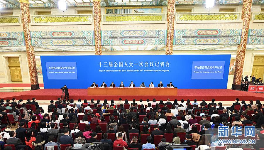 3月20日,十三届全国人大一次会议在北京人民大会堂举行记者会,国务院总理李克强应大会发言人张业遂的邀请会见中外记者,并回答记者提问。国务院副总理韩正、孙春兰、胡春华、刘鹤参加。新华社记者 丁林 摄