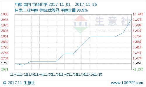 国内甲醇市场行情大幅攀升维持高位2017-11-17