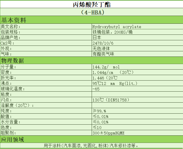 丙烯酸酯类丙烯酸羟丁酯(4-HBA)