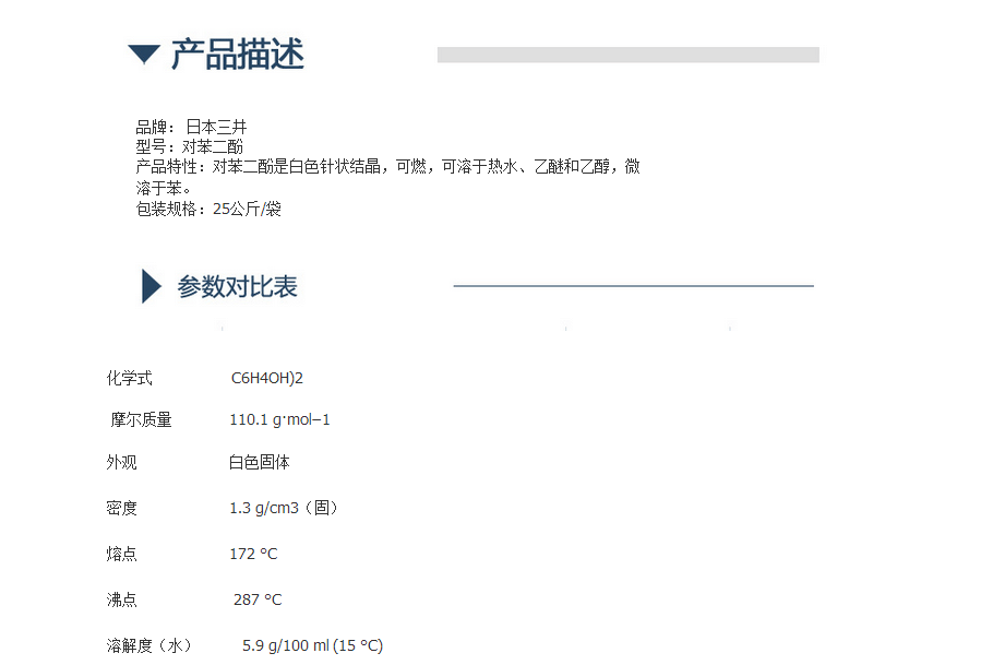 当前位置: 首页 > 溶剂 > 胺类/醇胺类溶剂 > 胺类中间体 > 日本三井对苯二酚