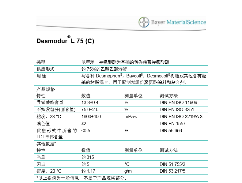 产品型号德国科思创(原 ) 固化剂L75(C)