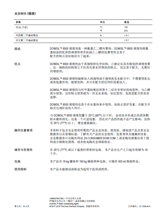 产品型号道康宁(DOW) 8500 特种硅油化妆品硅油