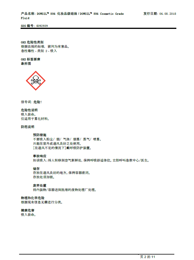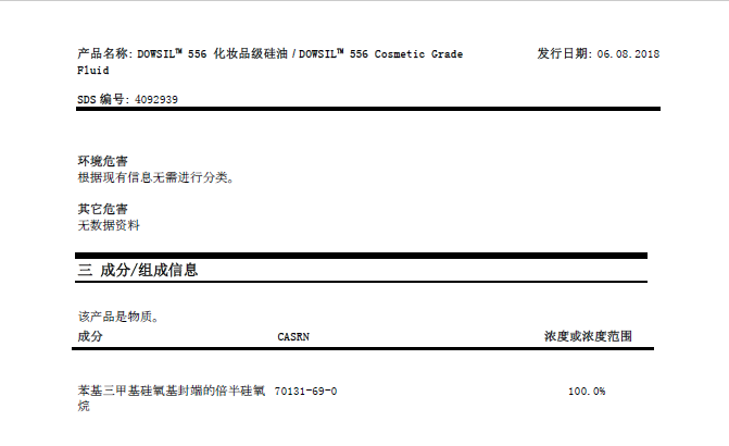 产品型号道康宁(DOW) 556 特种硅油化妆品硅油