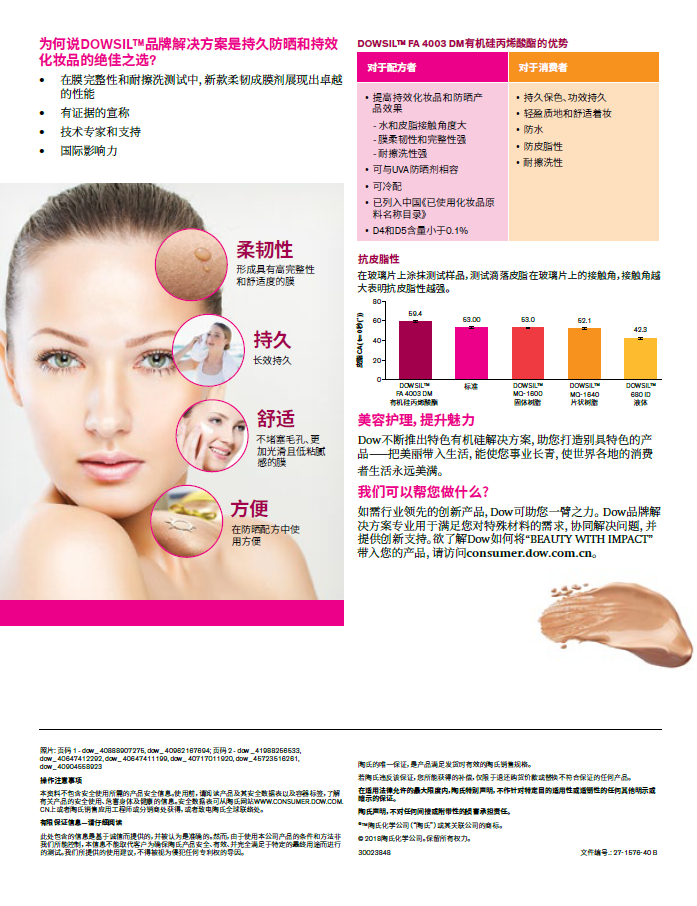 产品型号道康宁(DOW) FA 4003化妆品成膜助剂