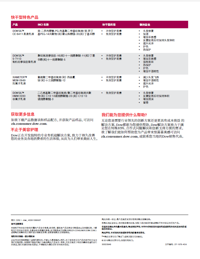 产品型号道康宁(DOW)CE-1874化妆品有机硅油乳液