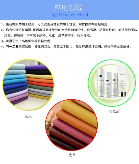 硅油的优异特性,使在工业生产、国防、科研、和医疗卫生等部门获得了极其广泛的应用,主要用于电气绝缘、脱模、消泡、阻尼防震、液压、防尘、防水和高低温润滑等方面。包装及贮运: 1、本品应贮存在洁净、密封、无铅或锡合金的容器中、避免接触酸、碱及混入其它杂质。不要接触明火。2、本品按照非危险品贮存及运输。3、在符合 1 条包装及贮存条件下,本品自生产之日算起,保管期为三年,超过保管期的产品,可以复验,合格后仍可使用。4、本品用200公斤装铁塑桶和50公斤、25公斤、20公斤、10公斤、5公塑料桶包装。