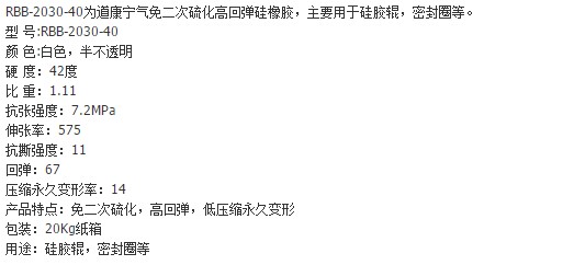 产品型号道康宁(DOW)RBB-2030 橡胶
