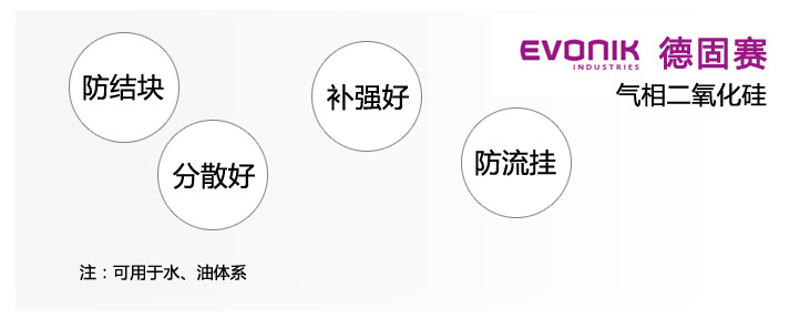 德固赛气相二氧化硅 A200控制液体系统、粘合剂、聚合物等的流变性与触变性;用作防沉降、增稠、防流挂的助剂;