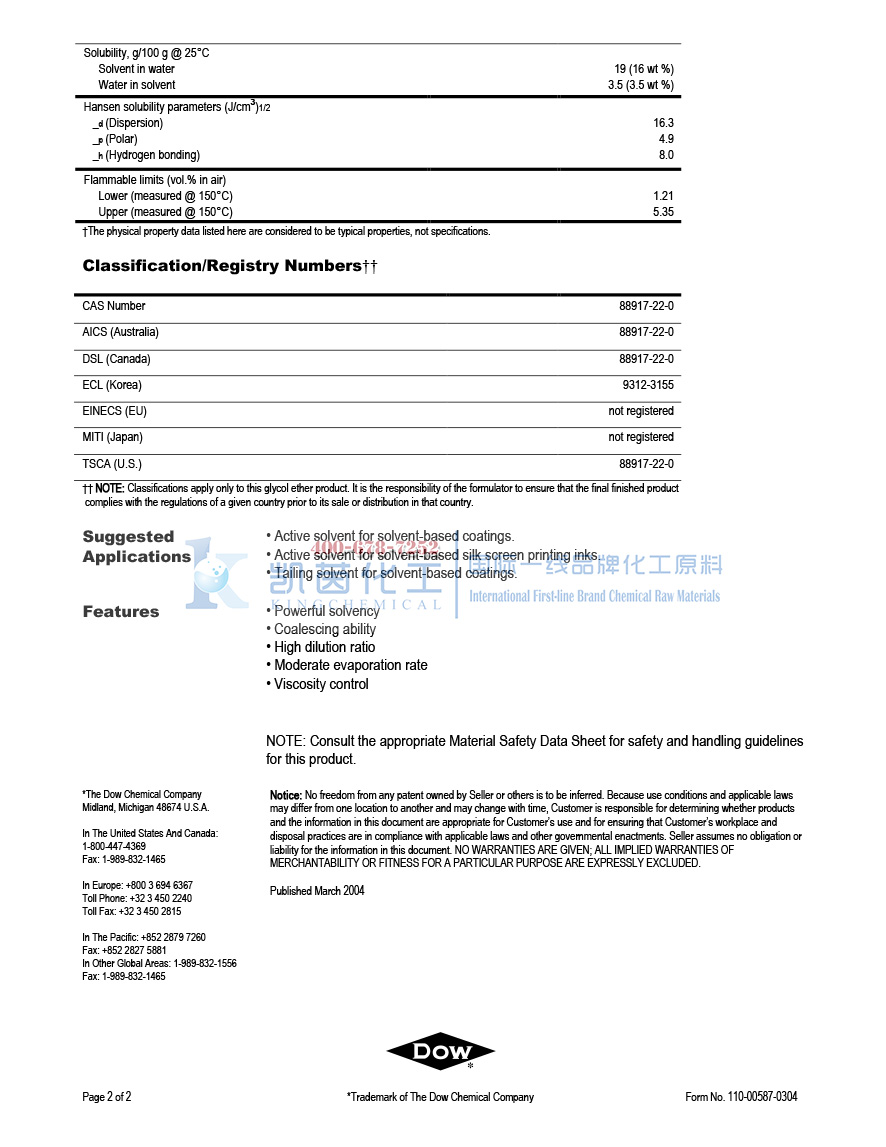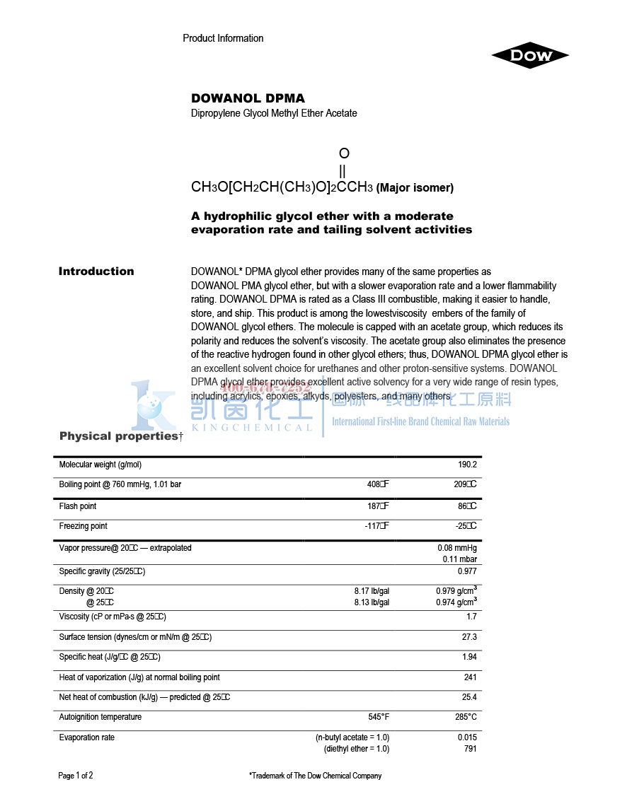 产品型号美国陶氏DOW二丙二醇甲醚醋酸酯DPMA(CAS:88917-22-0)