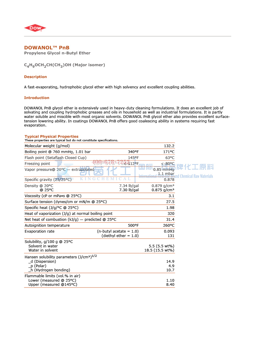 产品型号美国陶氏DOW丙二醇丁醚PnB(CAS号:5131-66-8)