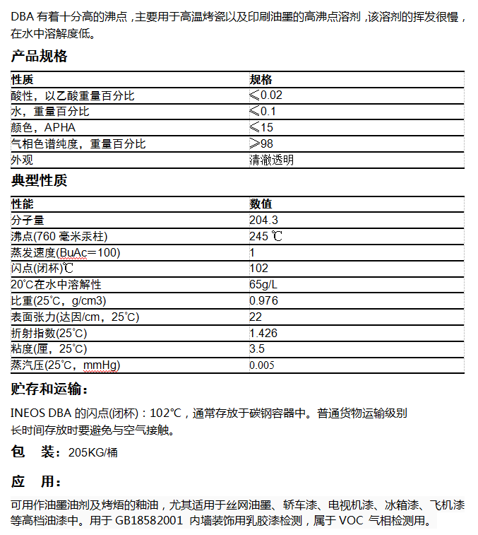 • 产品型号INEOS英力士 DBA 二乙二醇丁醚醋酸酯