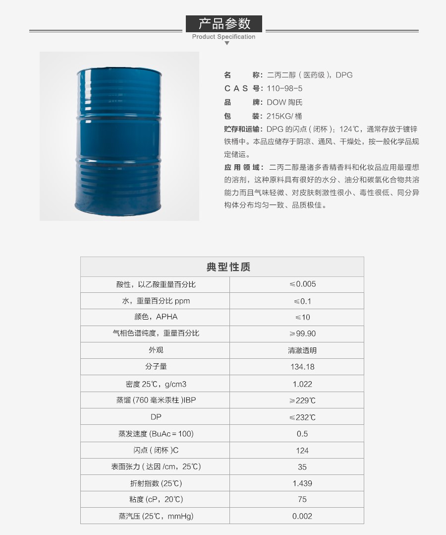 • 产品型号:陶氏化学 DPG 二丙二醇(医药级)