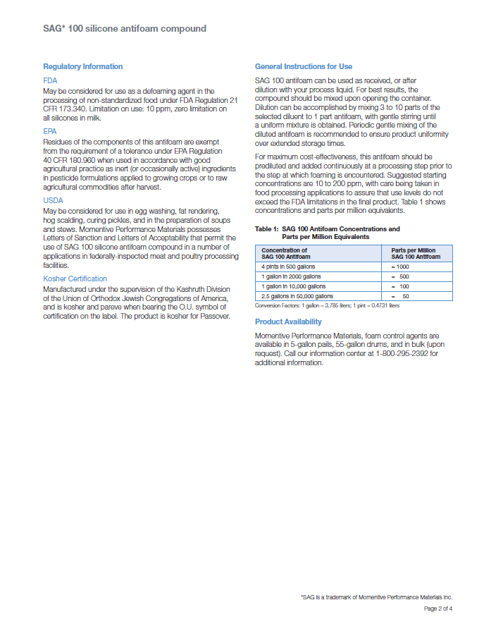 产品型号迈图SAG 100有机硅消泡剂