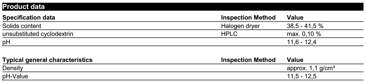 产品型号德国瓦克环糊精CAVASOL-W7 HP TL (high pH)