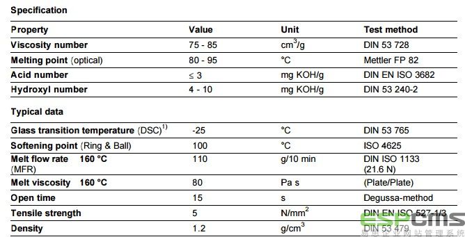 应用特性:德固赛共聚聚酯树脂 Dynacoll S1401是带端羟基的中分子量线性共聚聚酯。