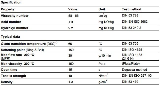 产品型号赢创德固赛 共聚聚酯树脂 Dynacoll S1606