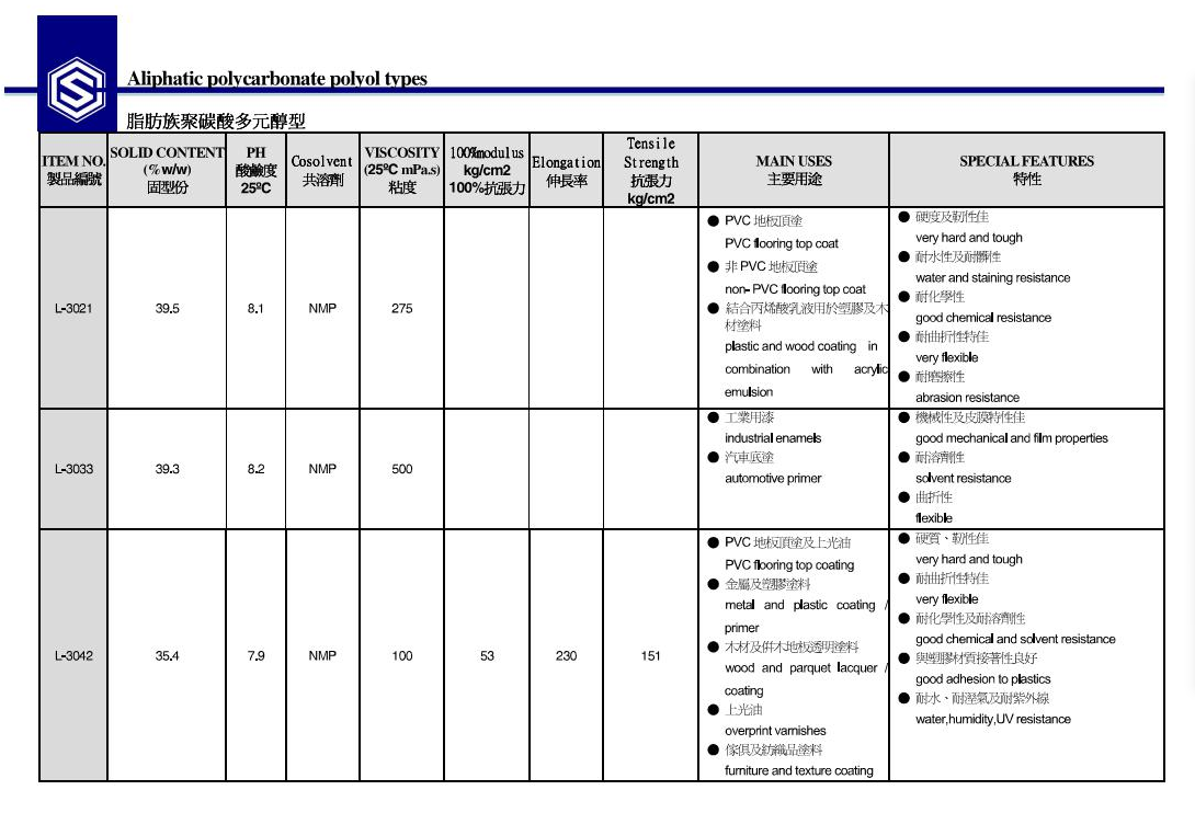 产协水性聚氨酯树脂L-3021 产品资料下载列表: