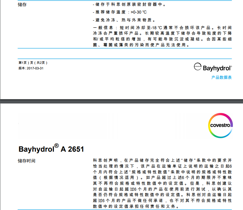 产品型号科思创(原 )水性聚氨酯 Bayhydrol A 2651