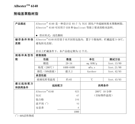 产品型号昕特玛Synthomer粉末涂料树脂Albester SilkyMatt 6140