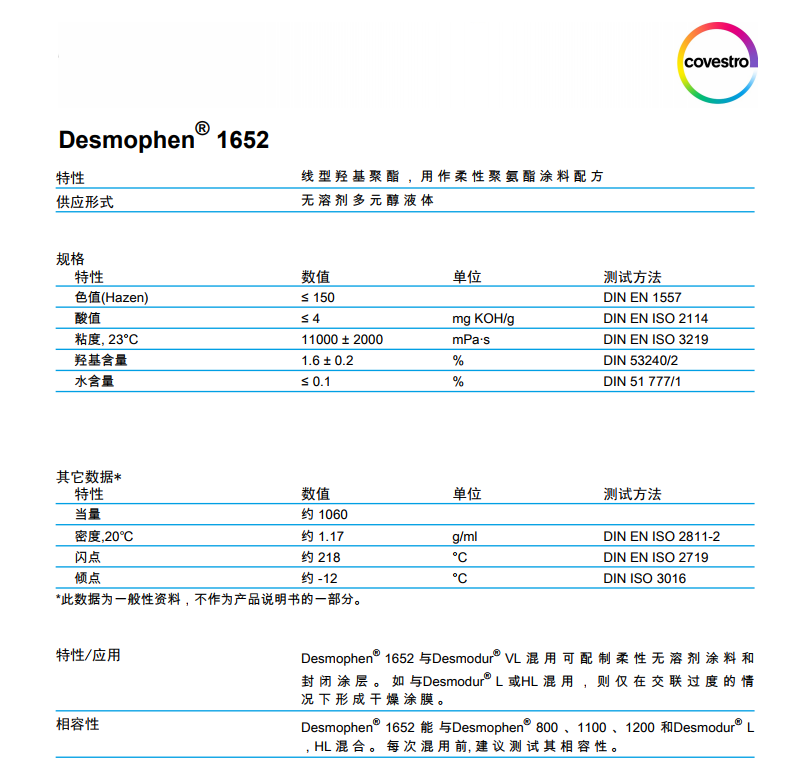 产品型号科思创(原 )水性聚酯树脂Desmophen 1652