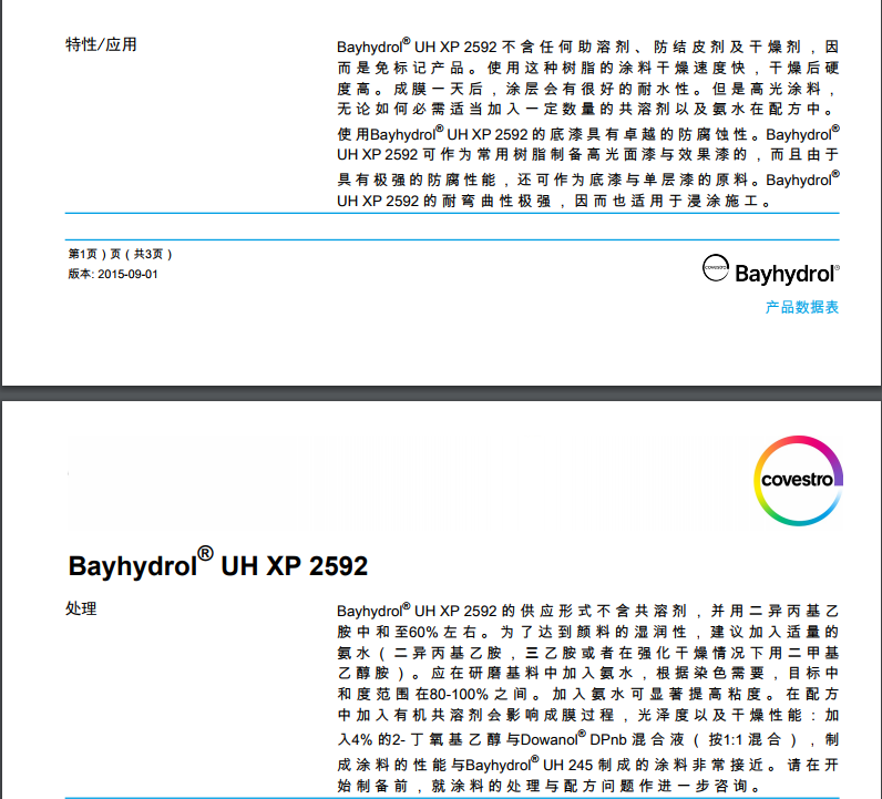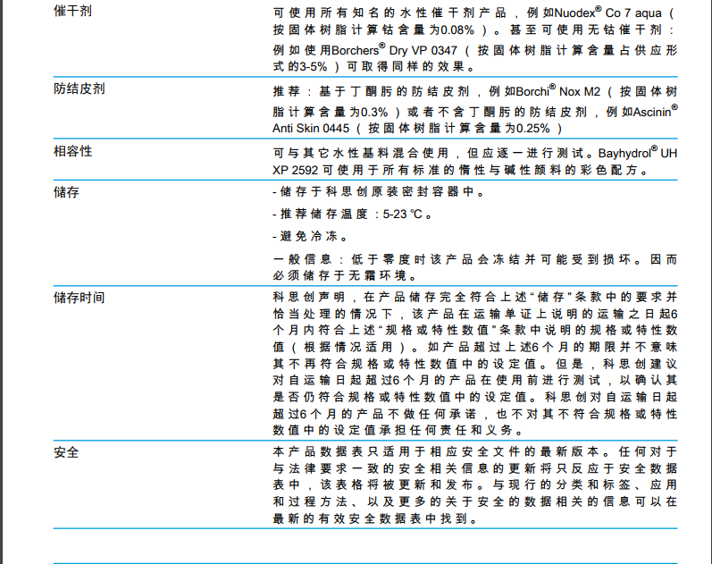 产品型号科思创(原 )水性聚氨酯树脂Bayhydrol UH XP 2592