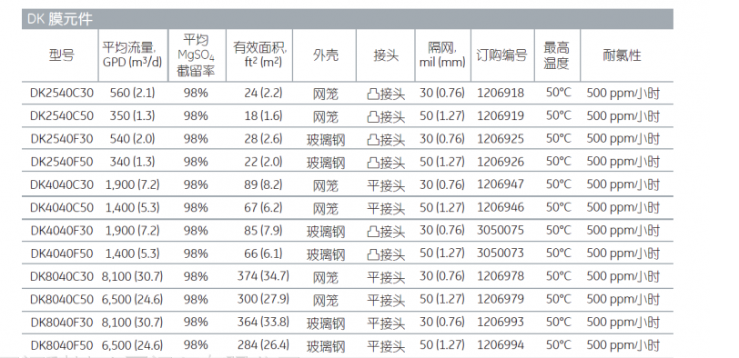 美国苏伊士原GE反渗透膜DK4040F30 产品资料下载列表: