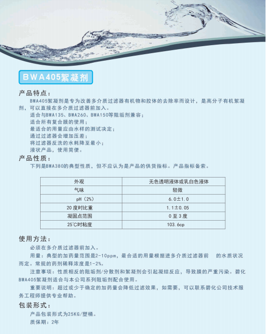 商品名称:英国碧化(原美国大湖)BWA-405 絮凝剂