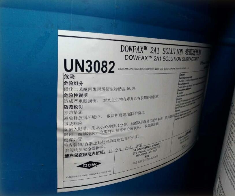2. DOWFAX 2A1分子量大,具有较强的吸附能力,配制乳液时效率高,成本低;乳胶粒径大小分布窄而均匀.