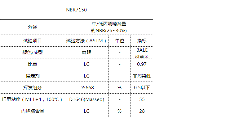 特性 中等门尼产品:耐油性/耐寒性优秀