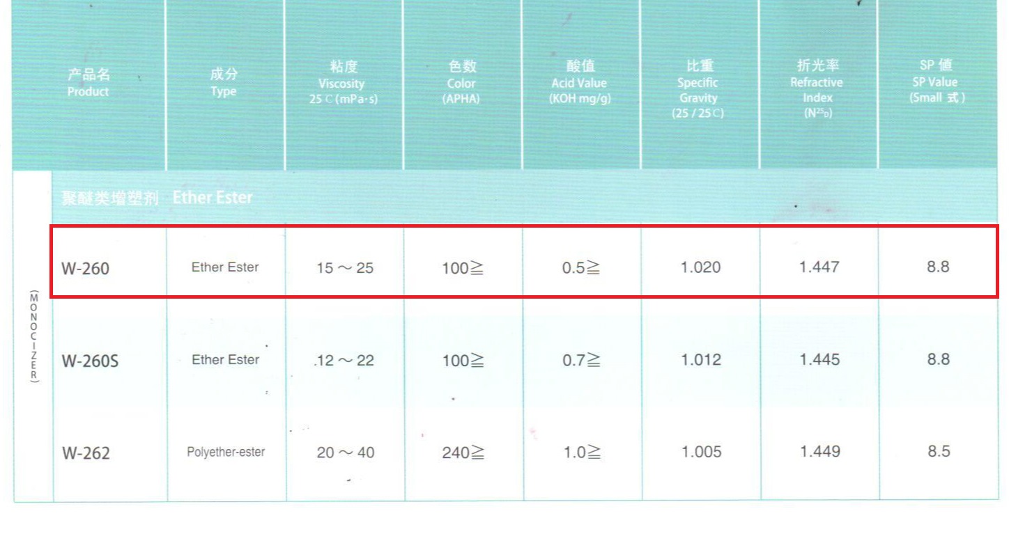 产品型号日本DIC增塑剂W-260