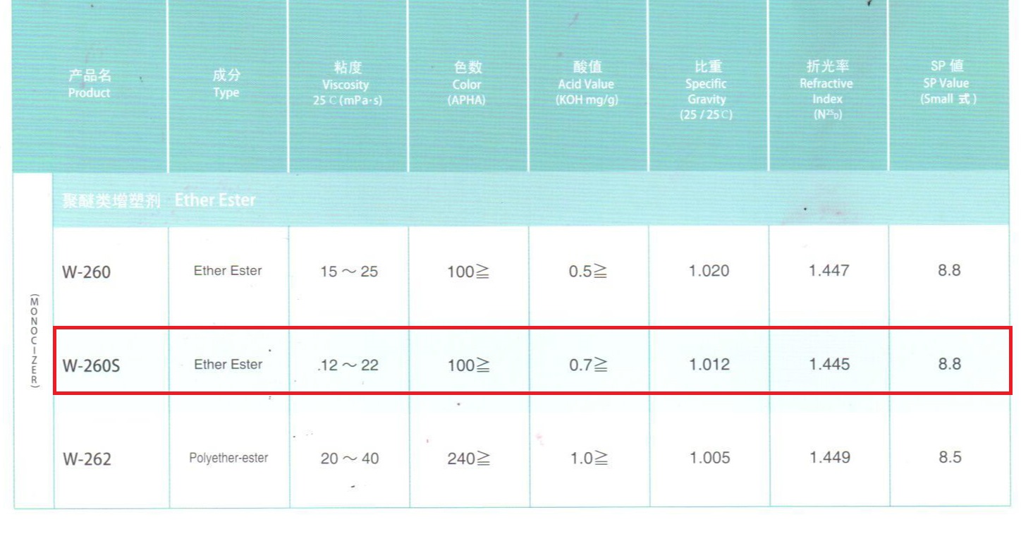 产品型号日本DIC增塑剂W-260S