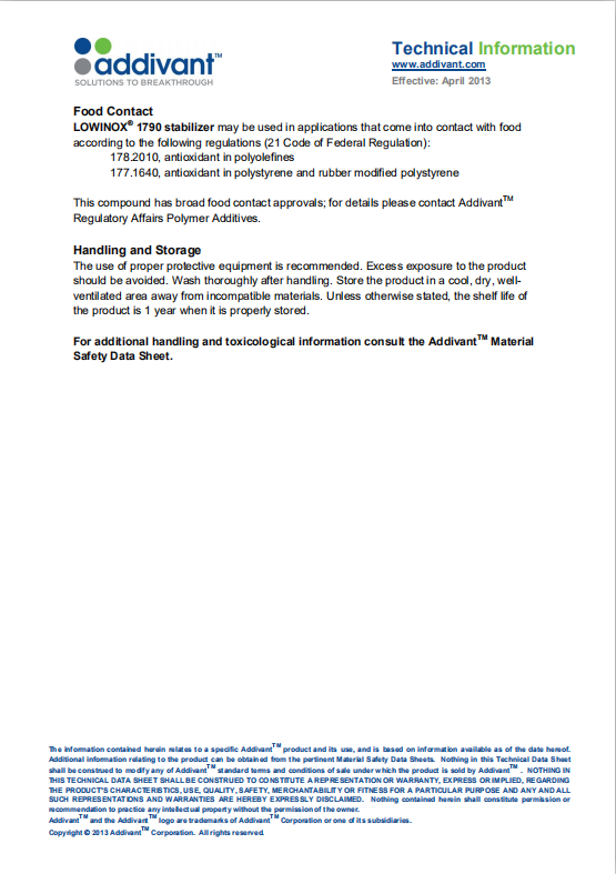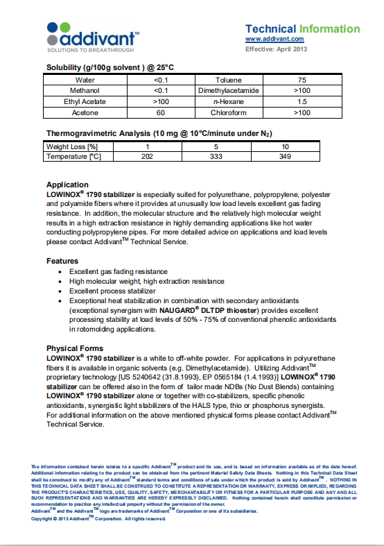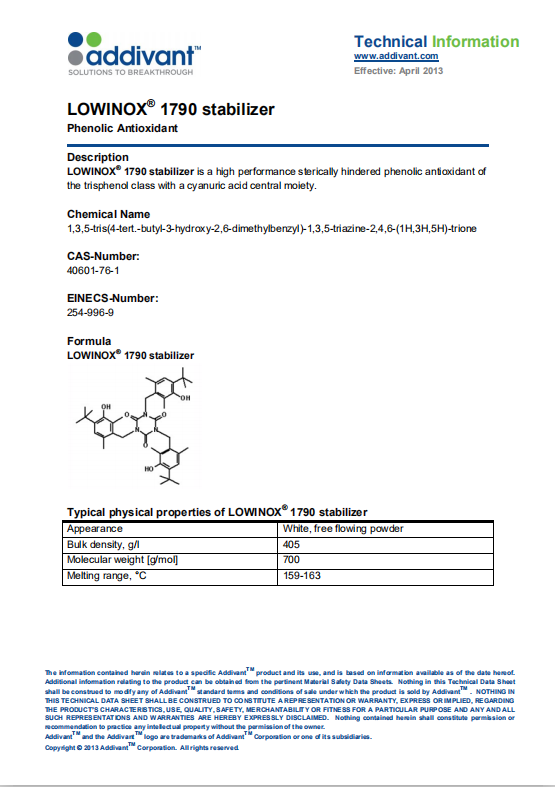 产品型号亚帝凡特(科聚亚)Addivant 抗氧剂1790
