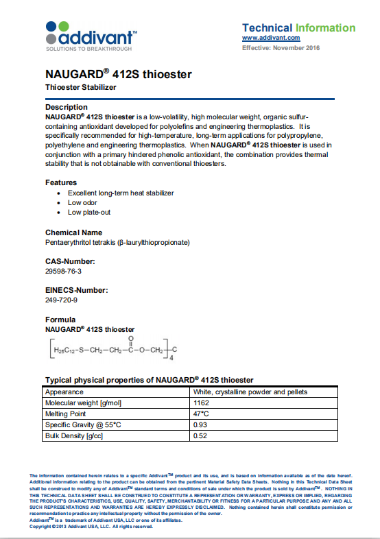 产品型号亚帝凡特(科聚亚)Addivant 抗氧剂412s