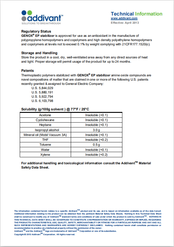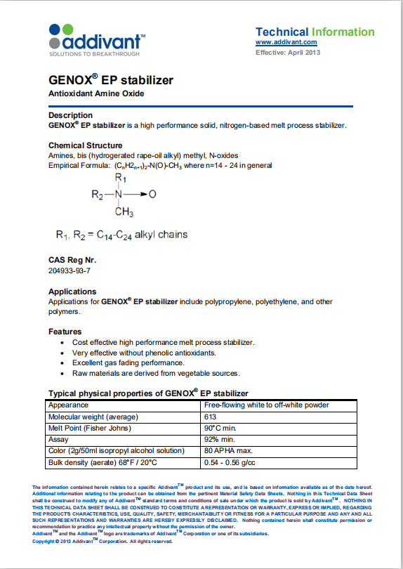 产品型号亚帝凡特(科聚亚)Addivant 抗氧剂ep