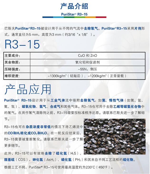 产品型号巴斯夫BASF气体净化吸附剂氧气清除剂Puristar R3-15氧气吸附剂