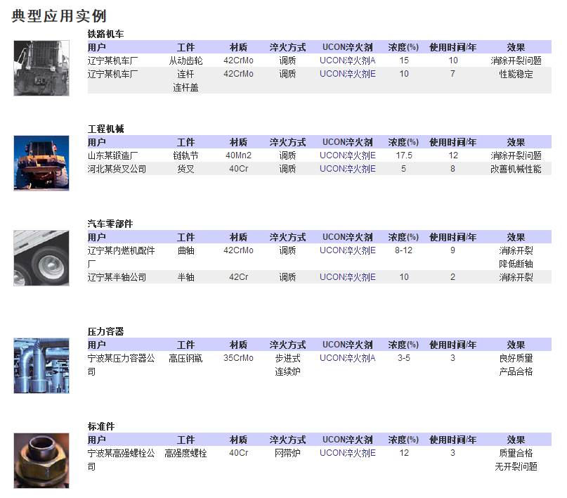 应用:飞机、汽车、工程机械、机车、冶金、轴承、压力容器和标准件等行业的热处理淬火工艺。