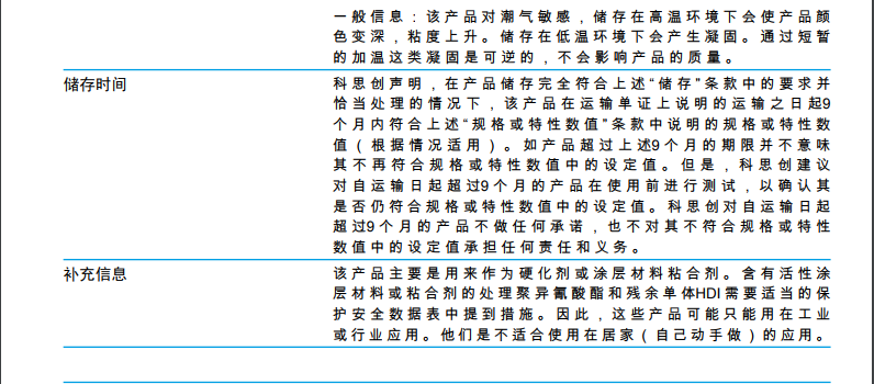 特性:脂肪族聚异氰酯(低粘ZHDI三聚体)
