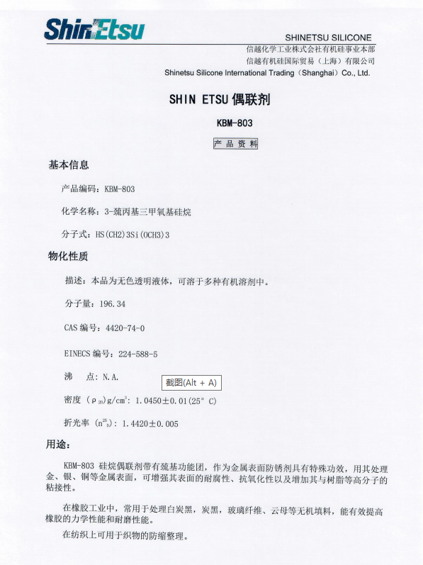 产品型号日本信越硅烷偶联剂KBM-803