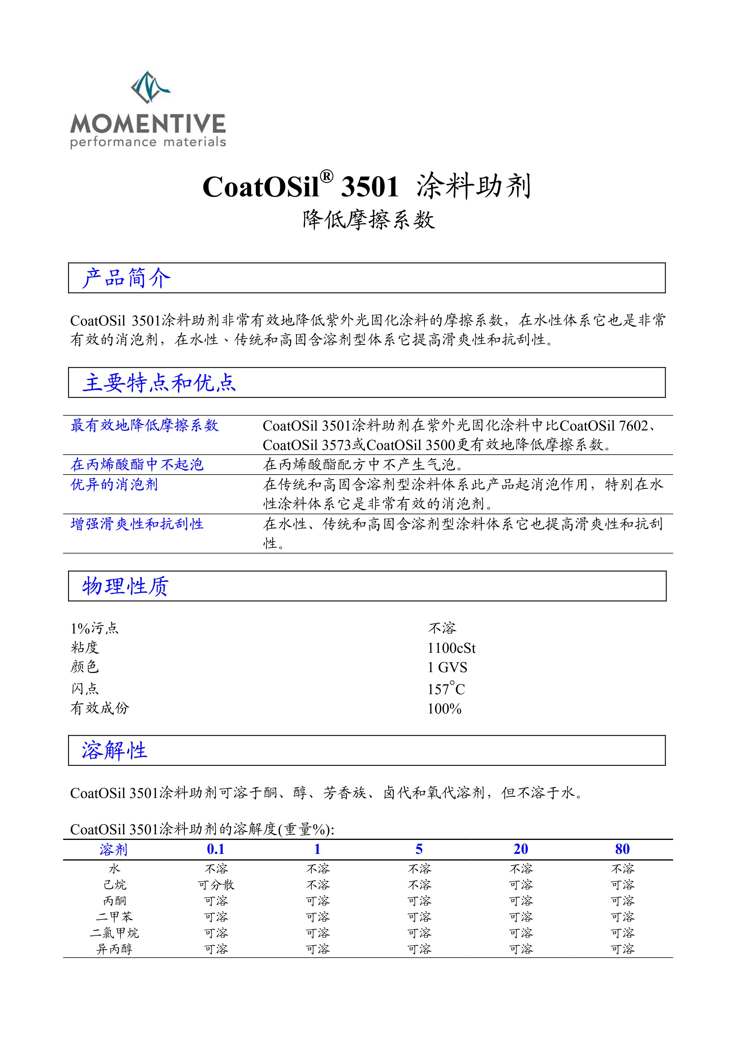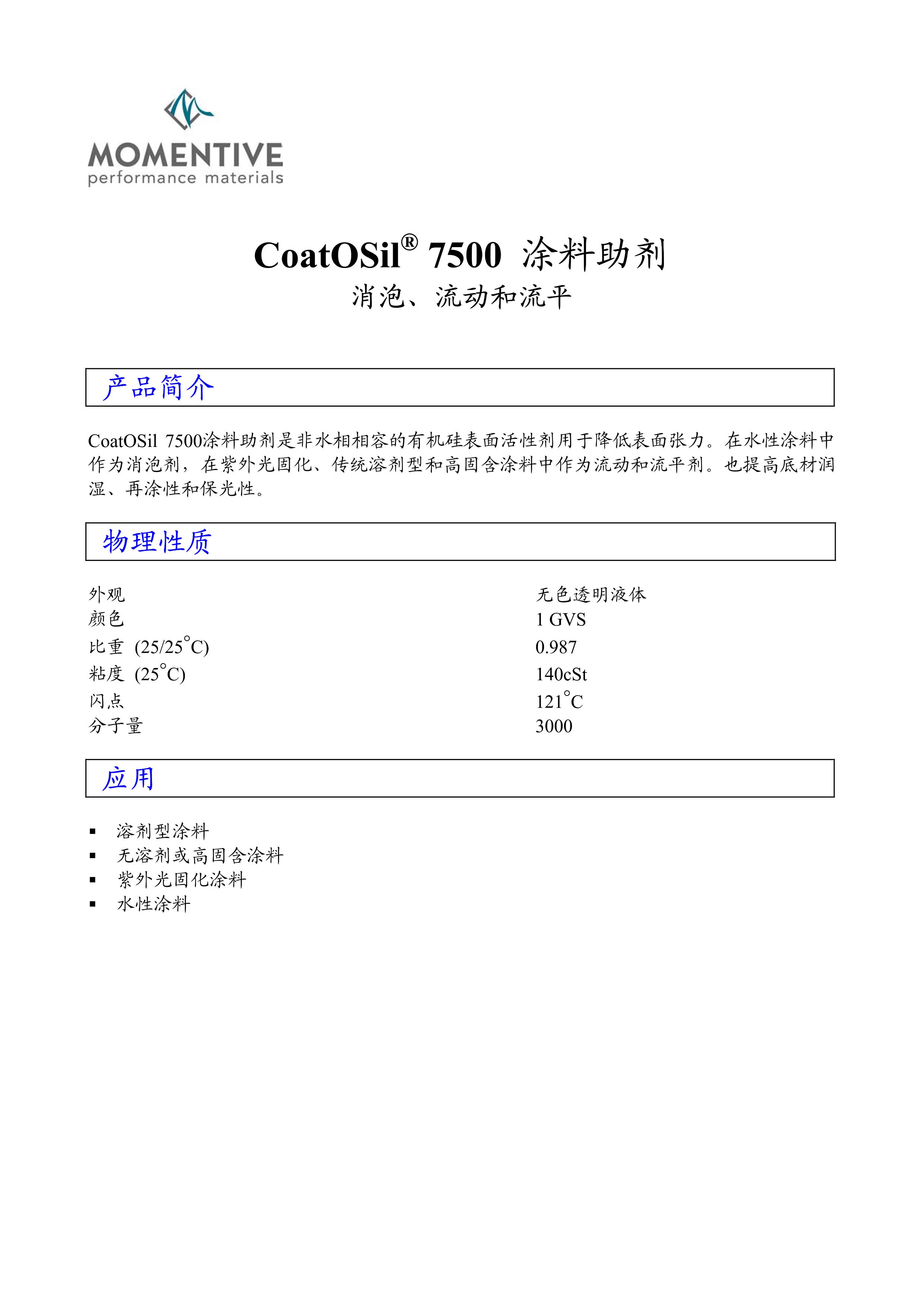 产品型号美国迈图Coatosil 7500 涂料助剂消泡剂流平剂硅烷偶联剂