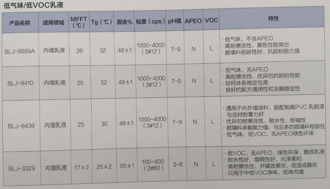 产品型号保立佳低气味 低VOC乳液BLJ-8410