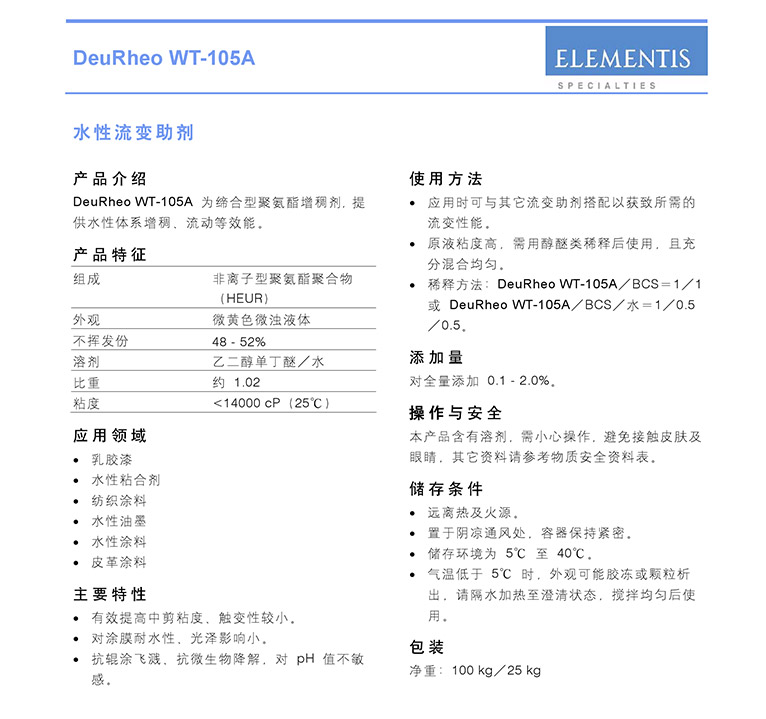 产品型号海明斯德谦水性助剂DeuRheo WT-105A