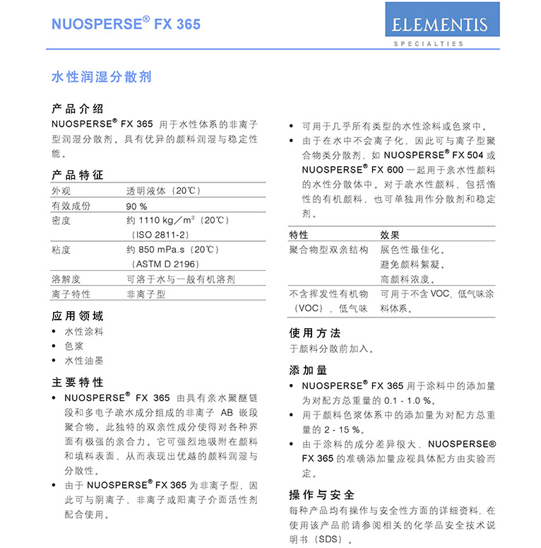产品型号海明斯德谦润湿分散剂NUOSPERSE FX 365