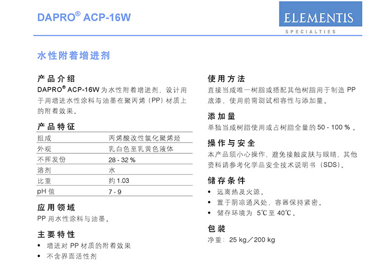 产品型号海明斯德谦抗PP附着增进剂DAPRO ACP-16W