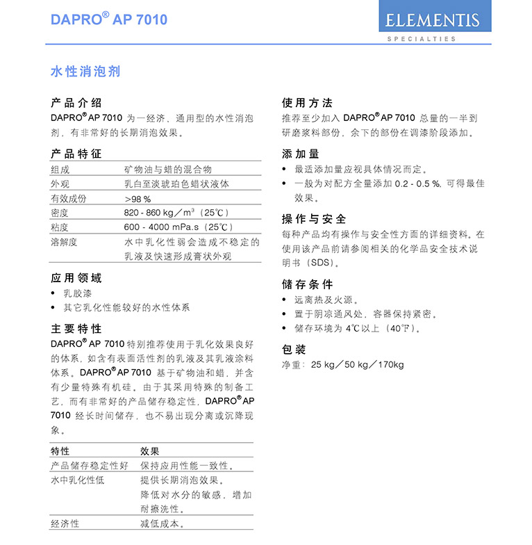 产品型号海明斯德谦水性助剂DAPRO AP 7010