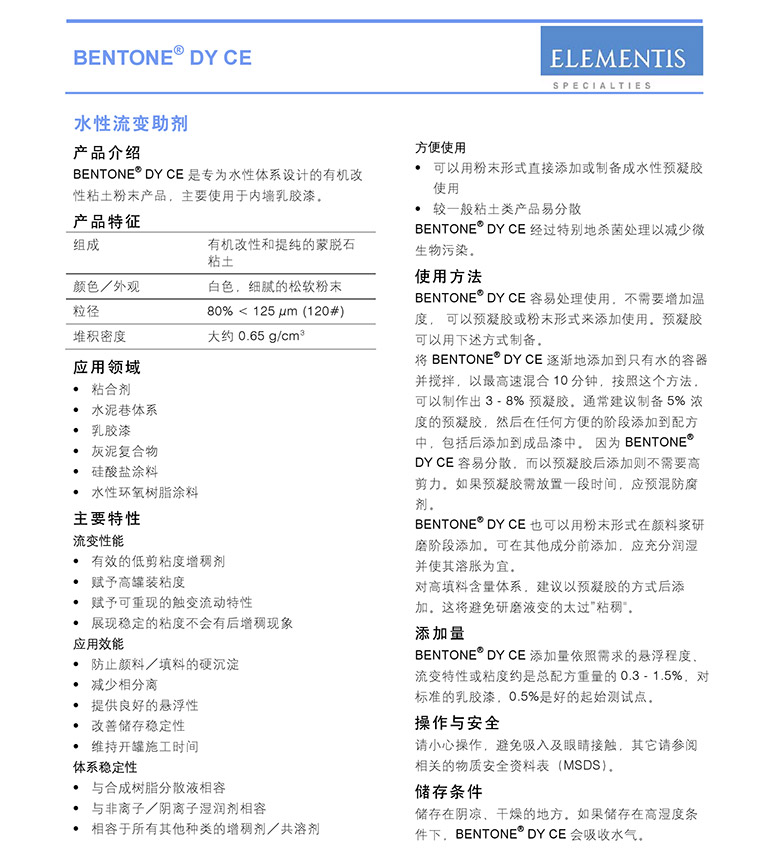产品型号海明斯德谦水性助剂BENTONE DY CE