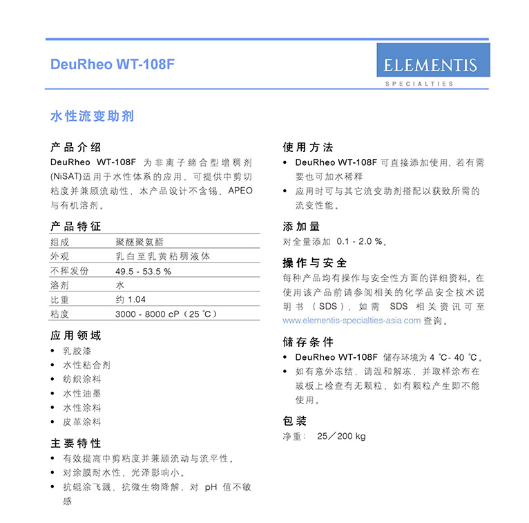 产品型号海明斯德谦水性助剂DeuRheo WT-108F