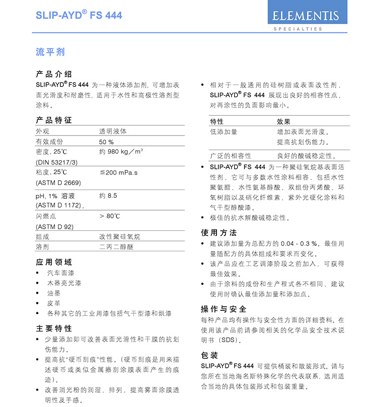 产品型号海明斯德谦润湿流平剂SLIP-AYD FS 444