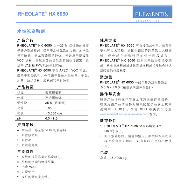 产品型号德谦海明斯水性流变助剂RHEOLATE HX 6050