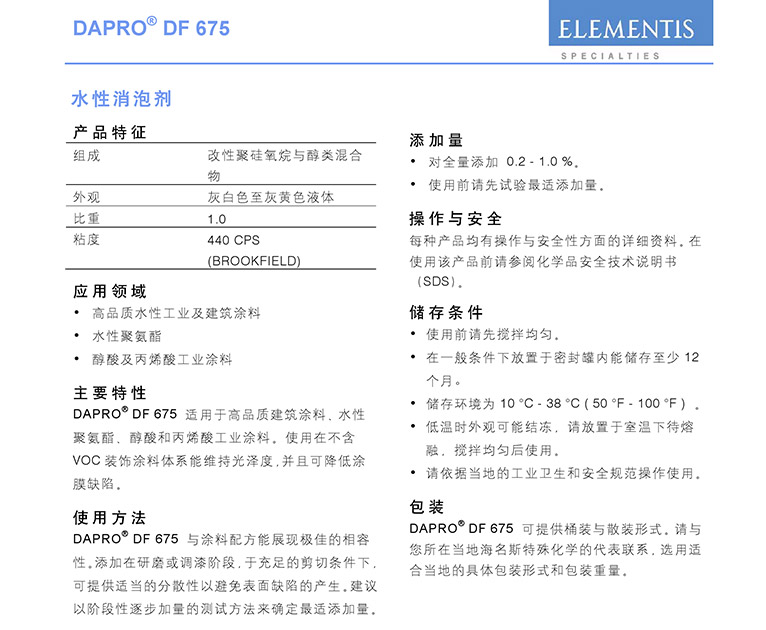 产品型号海明斯德谦水性助剂DAPRO DF 675