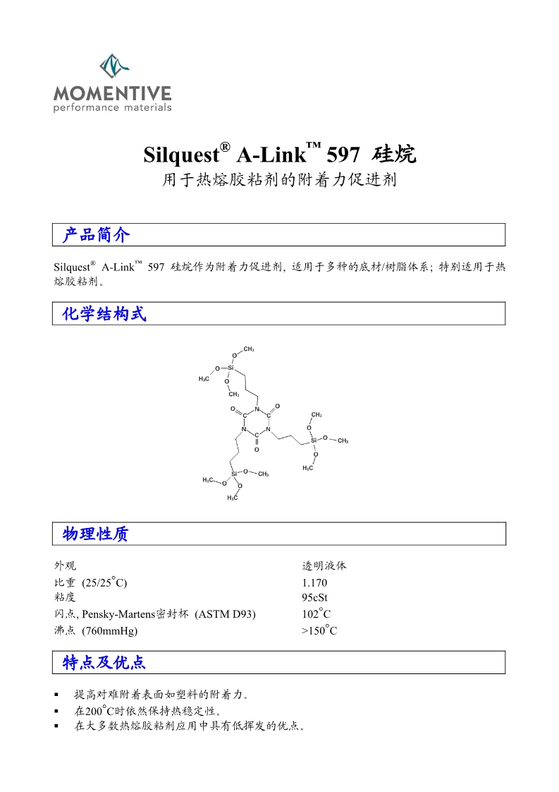 产品型号美国迈图硅烷偶联剂A-Link 597用于热熔胶粘剂的附着力促进剂